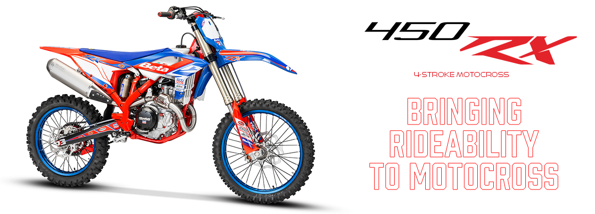 Beta has kept no secrets in their desire to chase the world of motocross, with the early USA introduction of the 300 RX 2 stroke model in 2021 about the same time as the first shots were taken of the prototype 450 RX 4 stroke model racing in the MXGP championship. It is officially the first four-stroke motocross bike built by Beta, the 450 RX model was designed to carry on the Beta tradition of Rideability. To offer a ride that is more forgiving while still providing performance that will encourage aggressive riding.